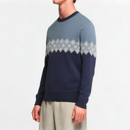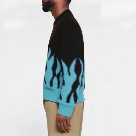 Flame Jacquard Knitted Round Neck Men’s Sweater