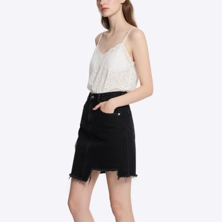 Fashionable Women’s Denim Mini Skirt With Raw Hem