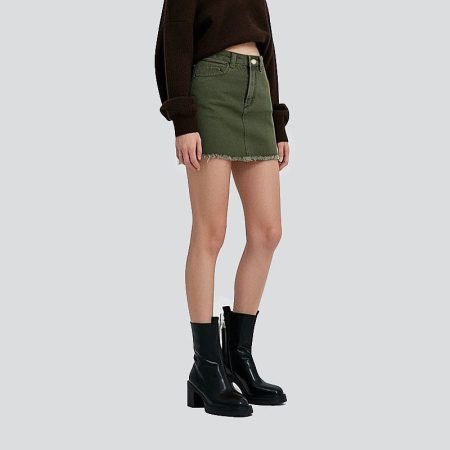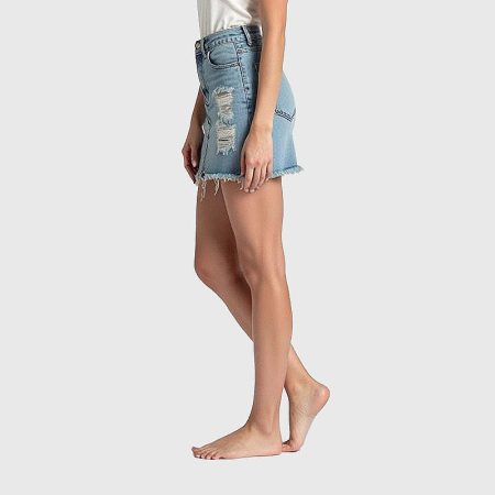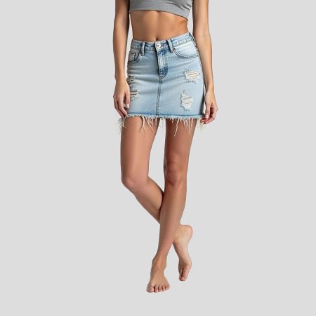 Women’s Frayed Elastic Short Length Denim Skirt