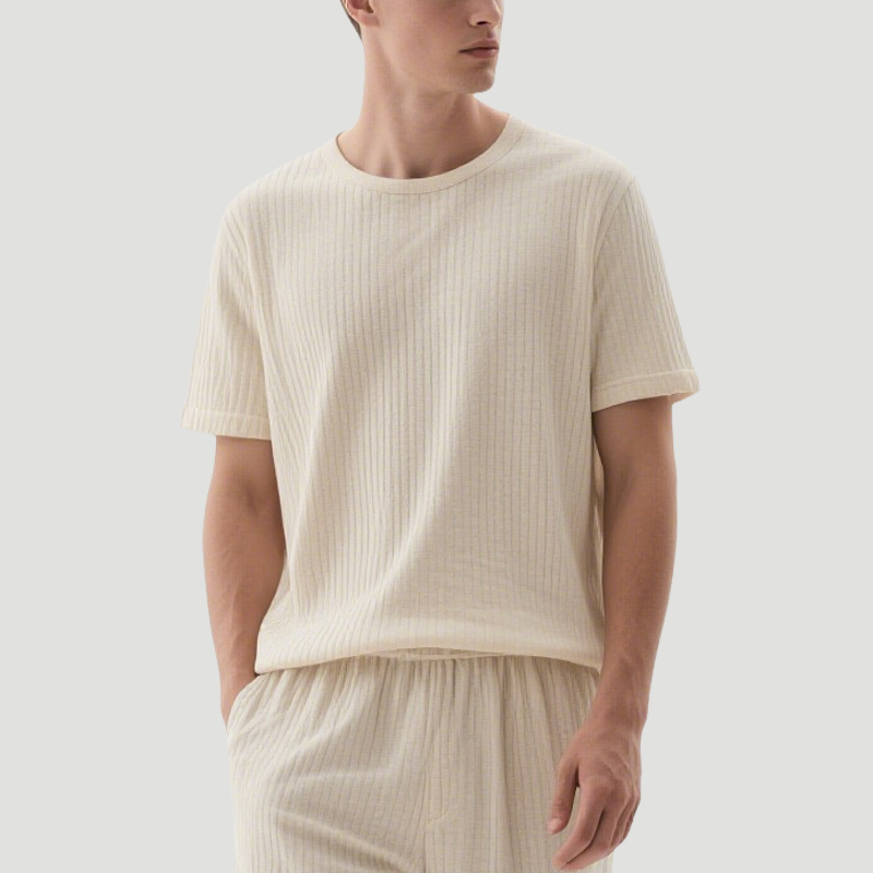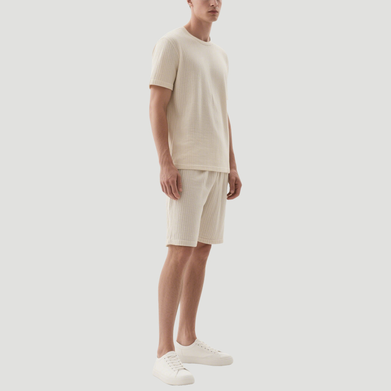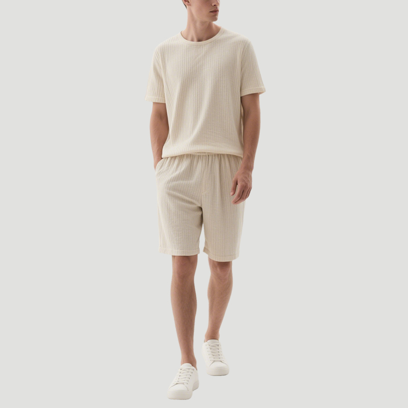 Simple and generous short-sleeved T-shirt with casual shorts, the overall style is fashionable and versatile, suitable for a variety of occasions.