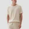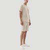 The top has a simple round neck design that fits the neck line; the shorts are loosely cut, free and casual, and there is no restraint in movement.