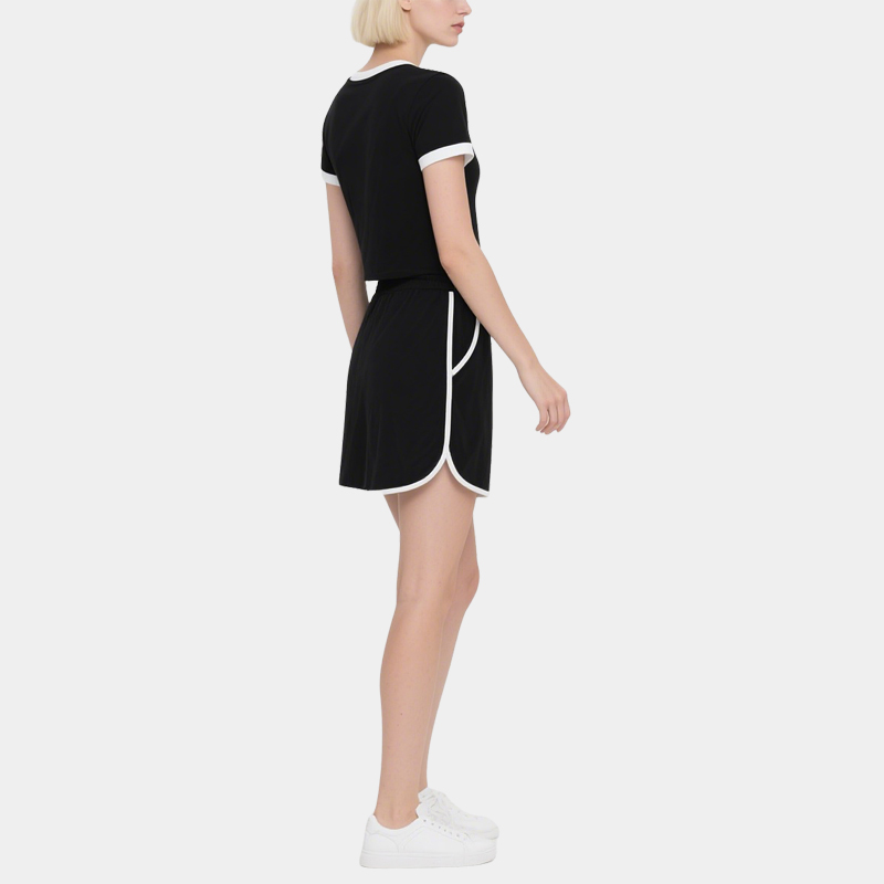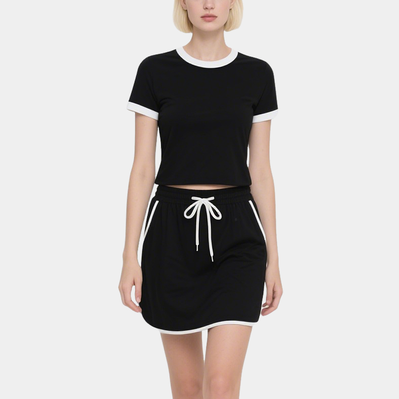 Black and White Contrast Short Top Lace Sports Style Skirt Set