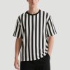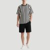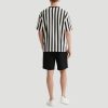Black and White Vertical Striped Men’s Top and Shorts Set