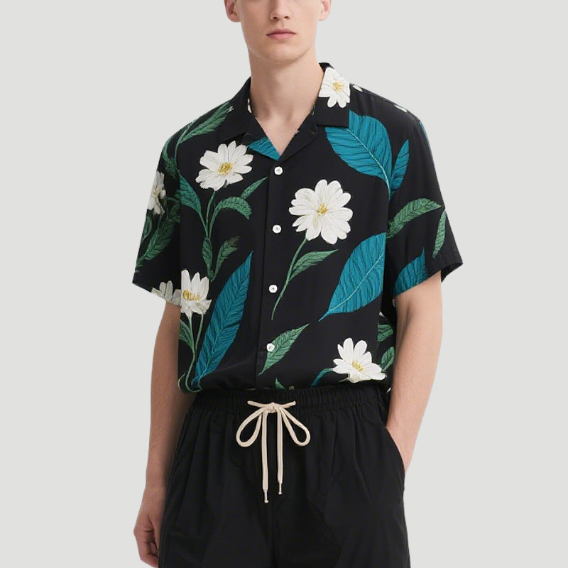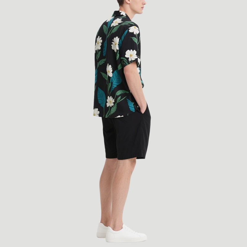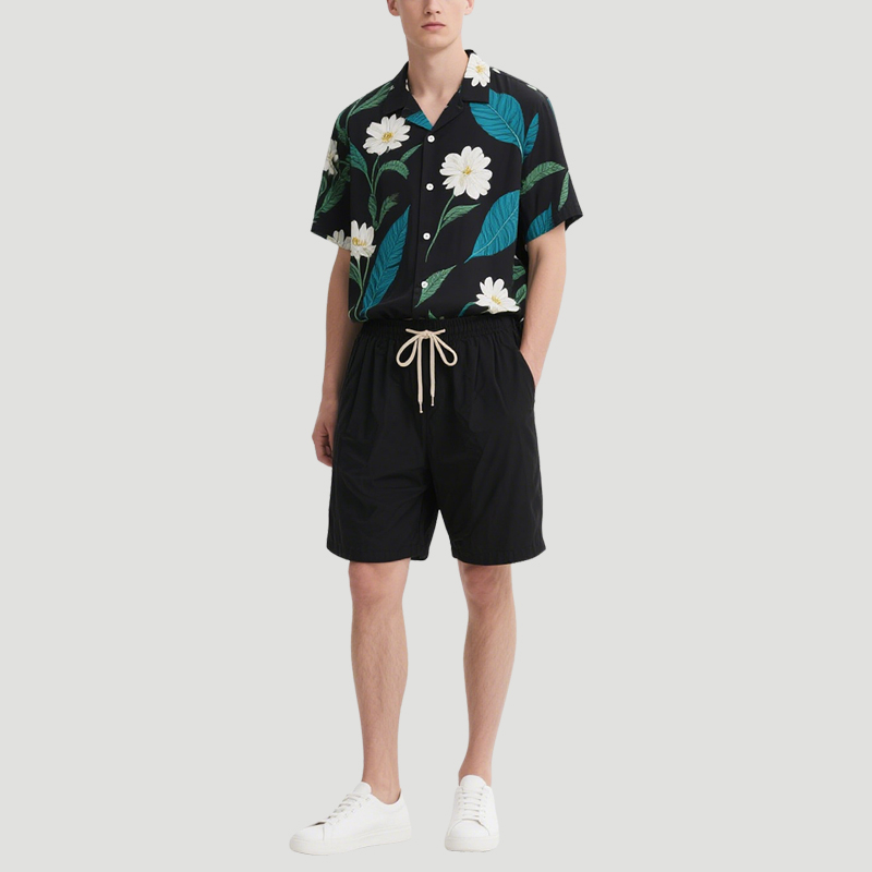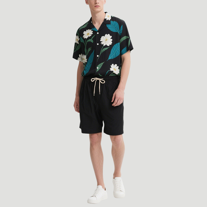 Black Bottom Floral Print Men’s Top Shirt and Shorts Set