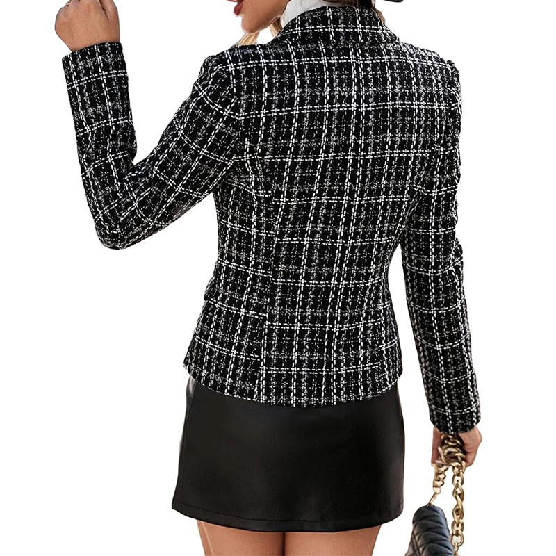 Fashion elements: The plaid print design increases the fashion sense and visual appeal of the jacket. Plaid prints are often regarded as a classic choice in the office, which is both professional and fashionable.