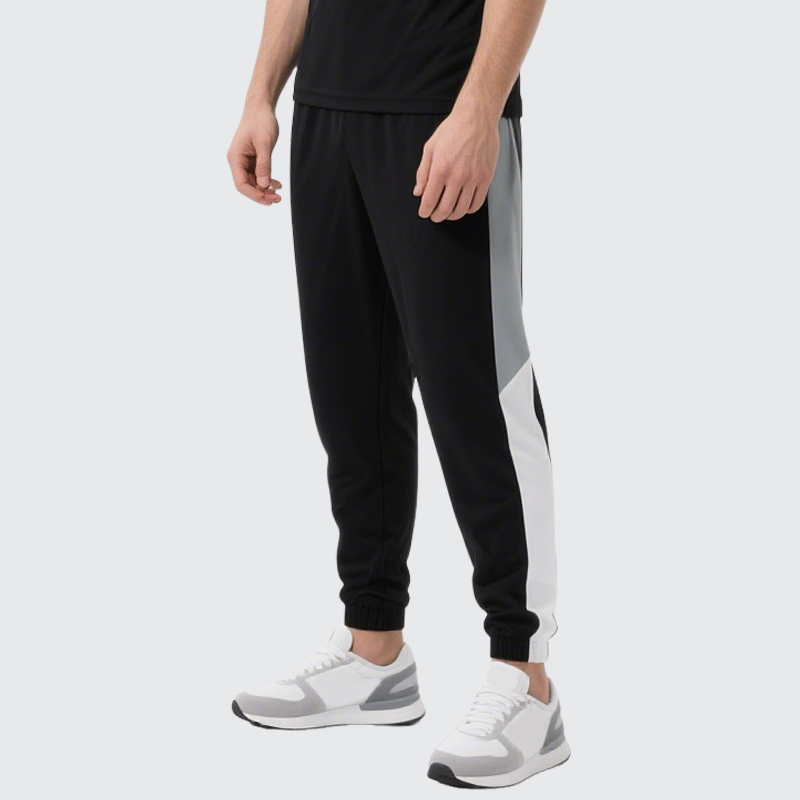 Black Men’s Jogging Pants with Grey & White Side Details Modern Gym Trousers