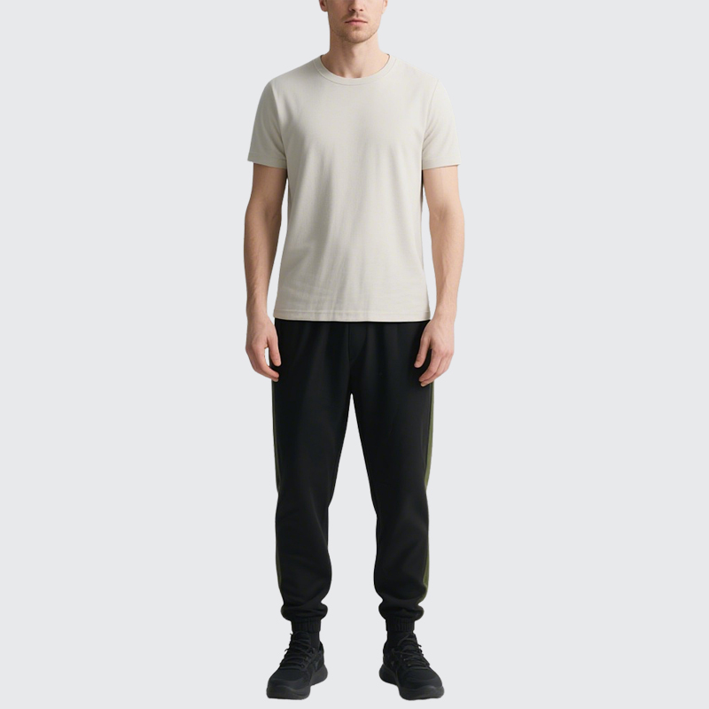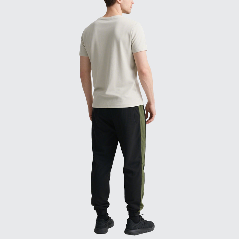 Black Men’s Jogging Pants with Olive Green Side Stripe