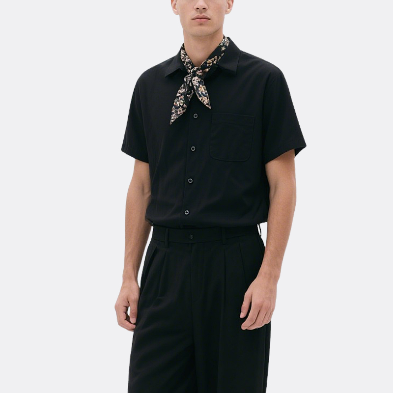 Shirt: Classic short-sleeve button-down with a tailored fit, chest pocket, and crisp detailing for a polished look.