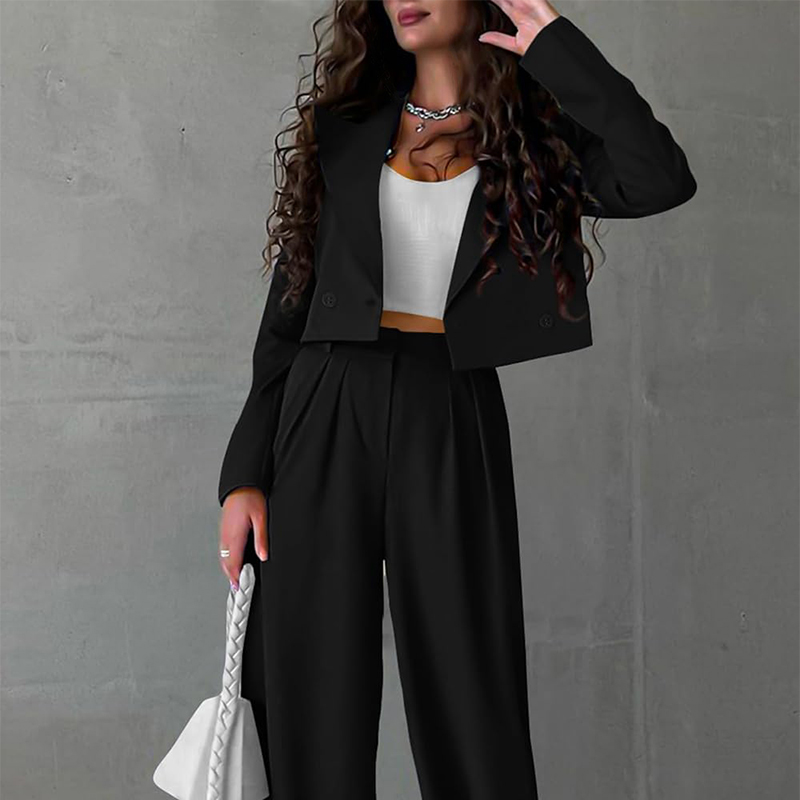 - The long-sleeved suit jacket has a lapel and double-breasted closure, which is both classic and fashionable. The padded shoulder design can enhance the shoulder line, increase the structure and three-dimensional sense of the garment, and show an elegant appearance.