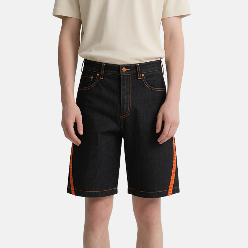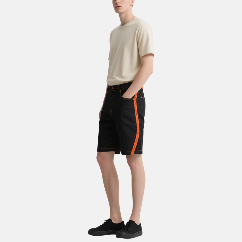 Black Side Orange Line Trendy Men’s Denim Shorts