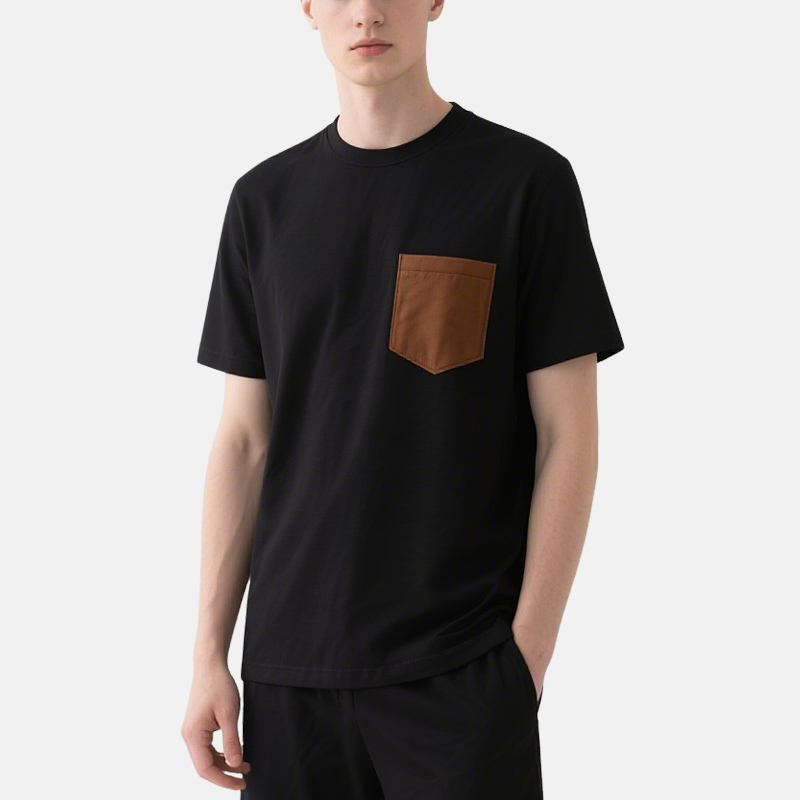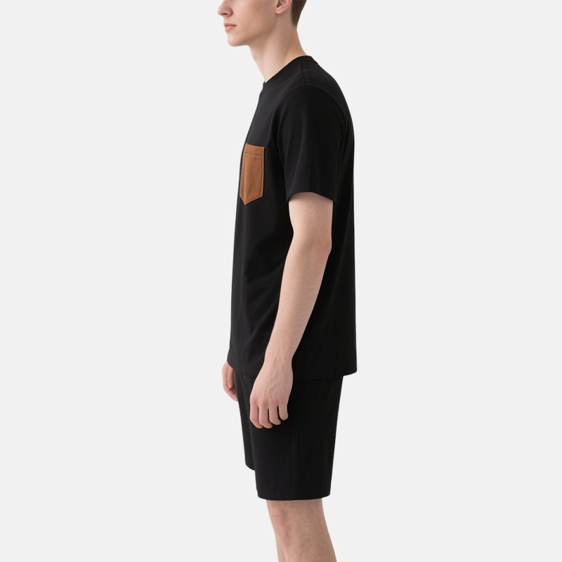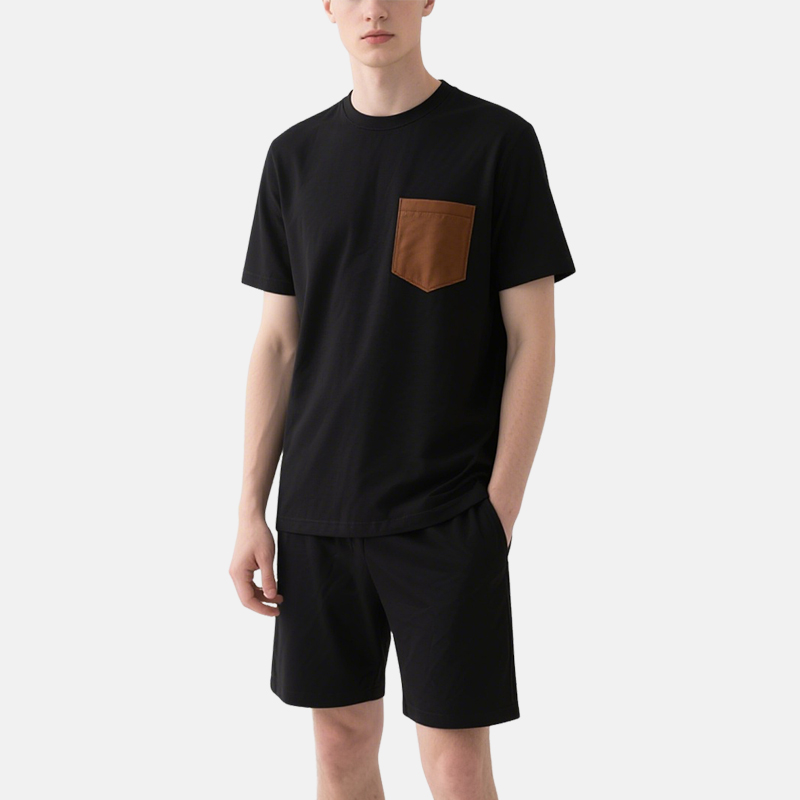 Black Tee with Brown Pocket & Shorts Set – Men’s Summer Casual Wear