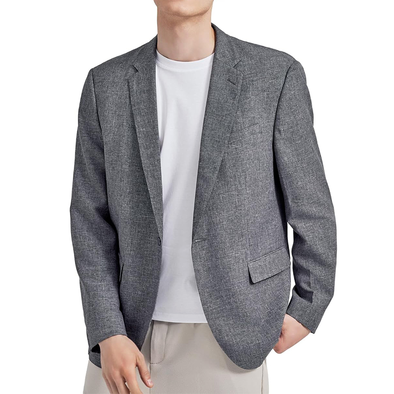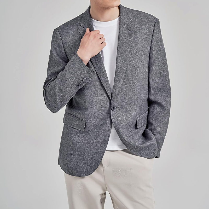 - The stylish notched lapel design and single-button closure show the classic style of high-end suits.