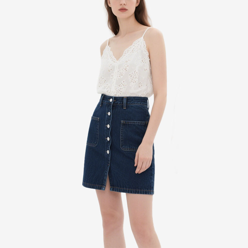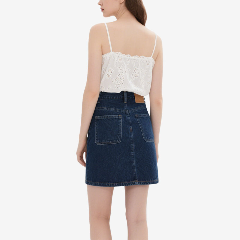 The design of the mini denim skirt not only elongates your legs, but also highlights your curves. This women’s skirt features a slit design, which adds visual interest and elegance.