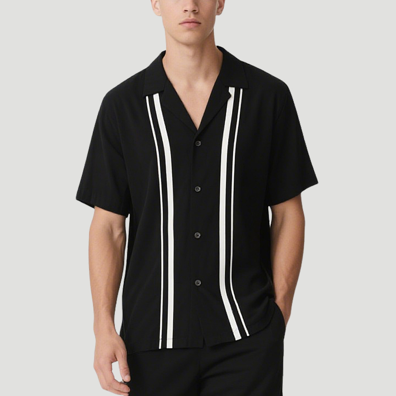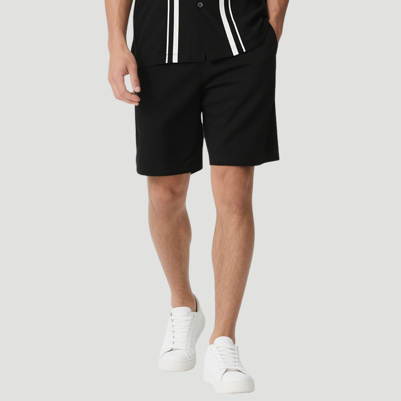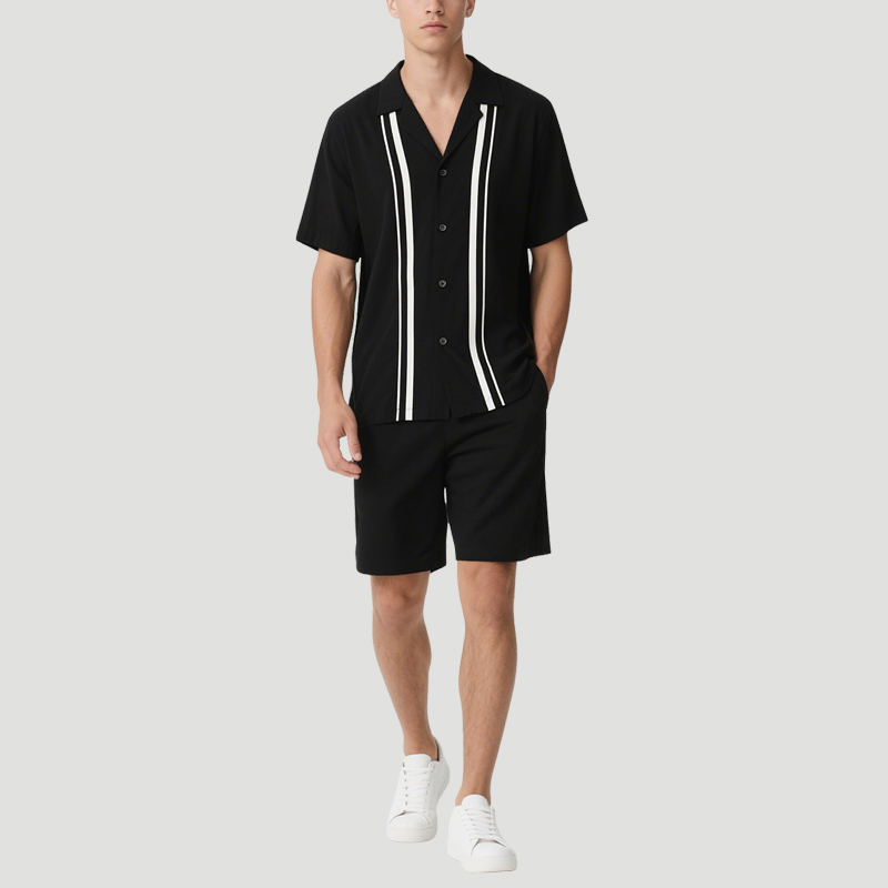 Classic and Fashionable Black and White Contrast Men’s Top and Shorts Set