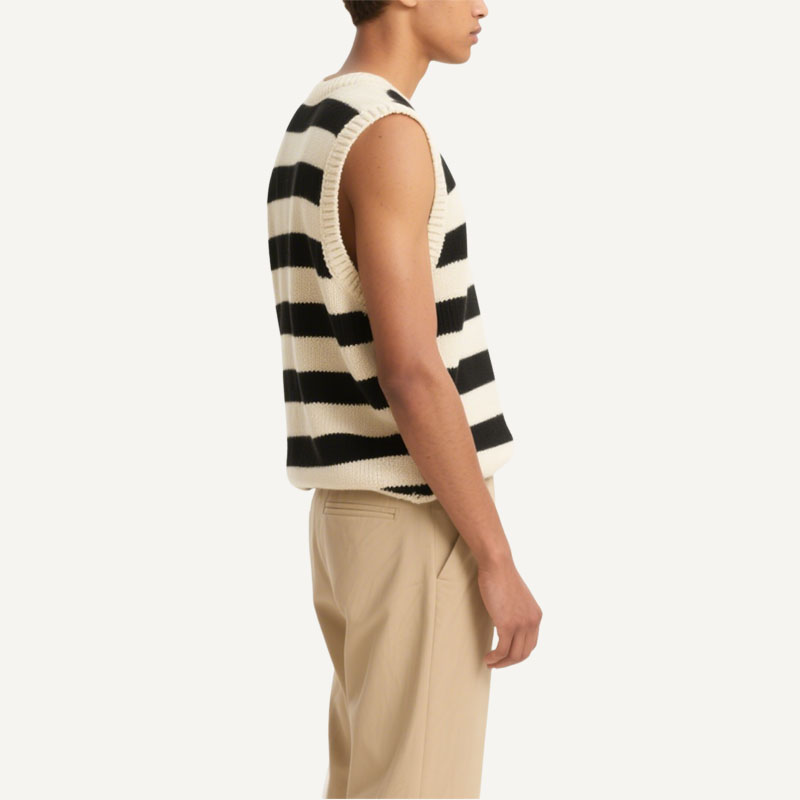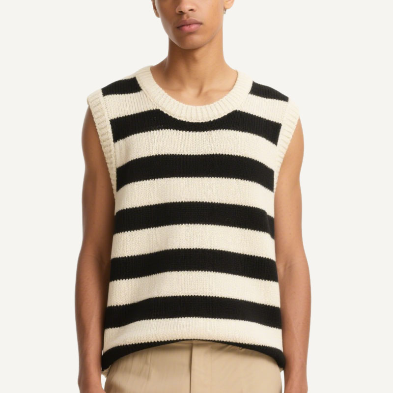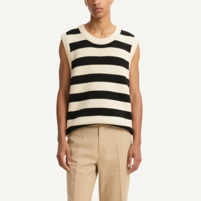 Classic Black and White Striped Round-Neck Men’s Knitted Vest