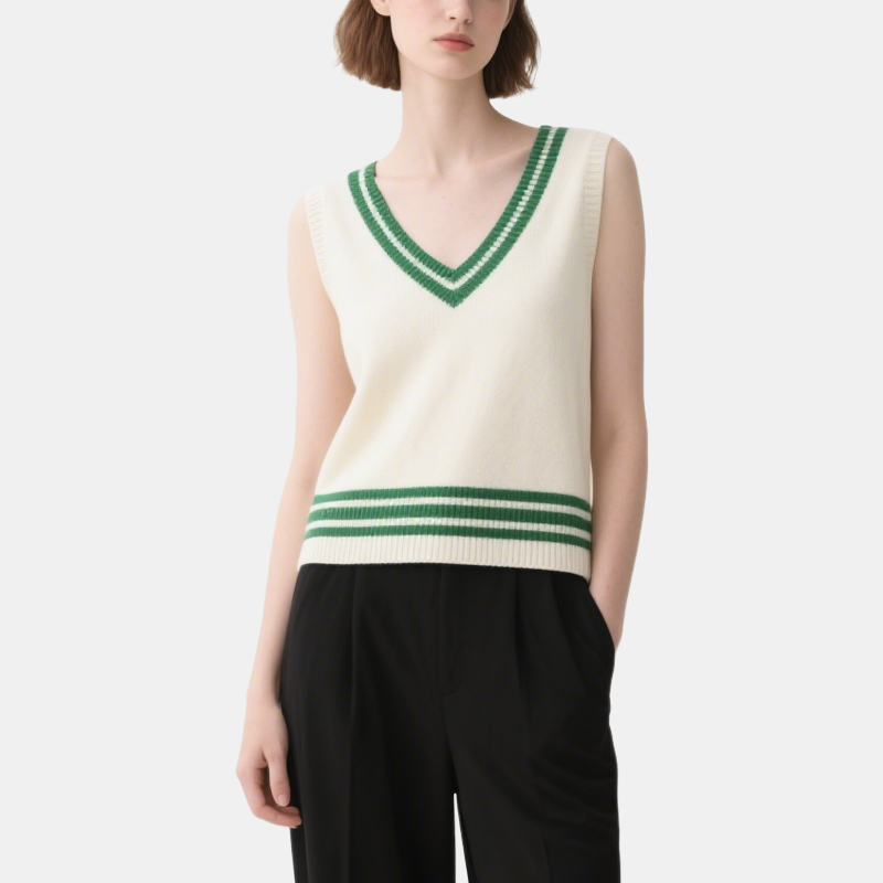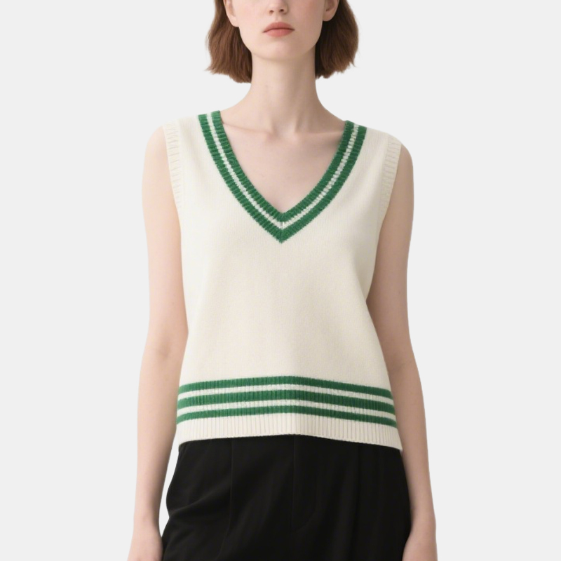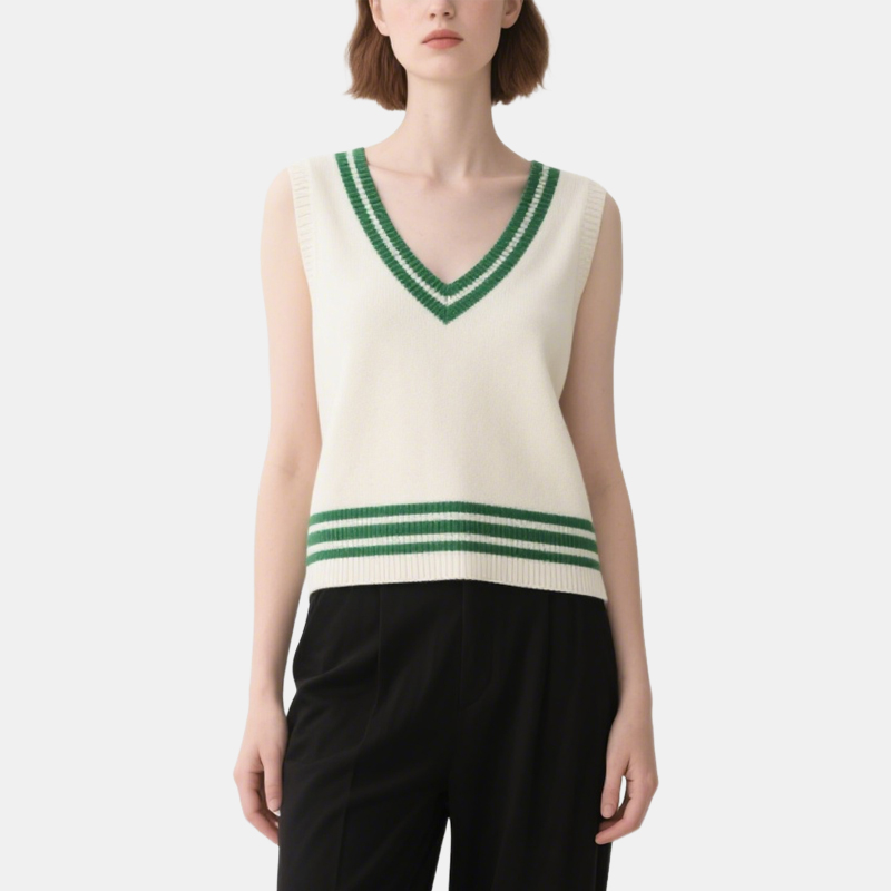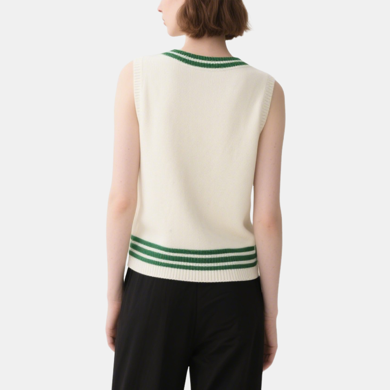 College Style Contrast Striped V-Neck Women’s Knitted Vest