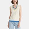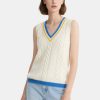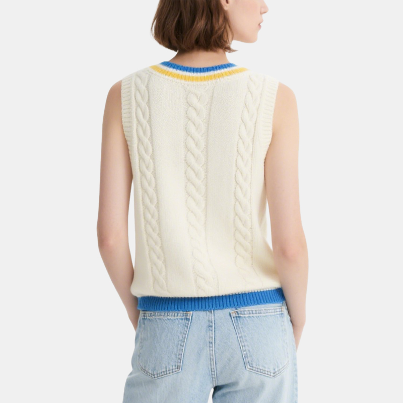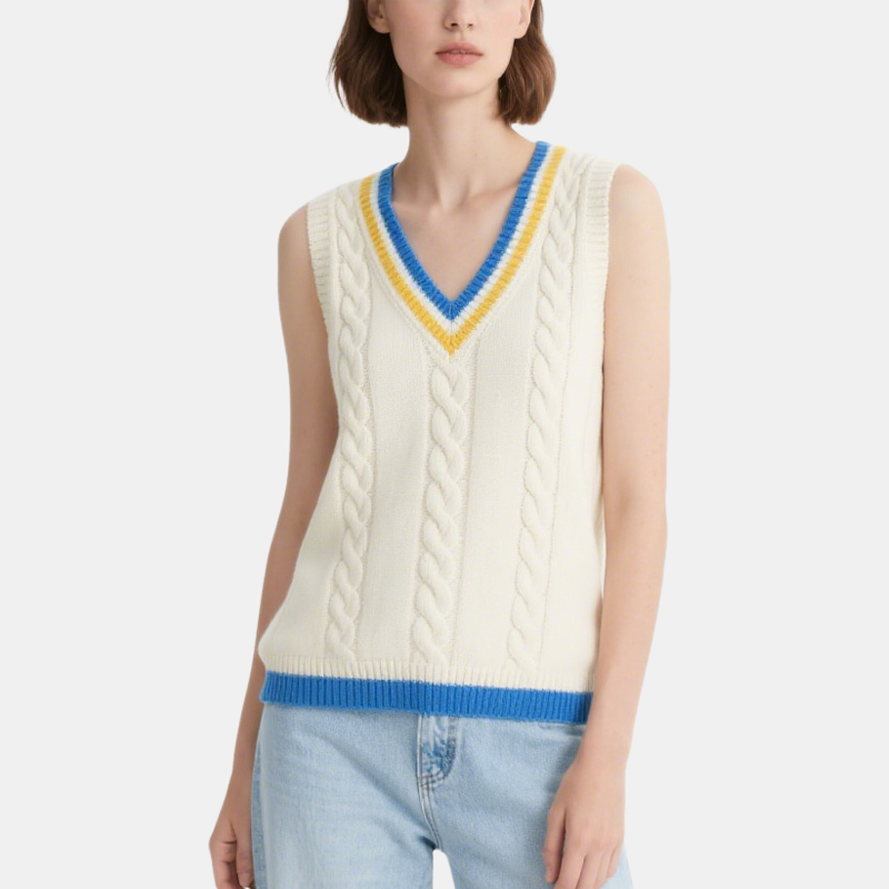 College Style Contrast V-Neck Cable Flower Women’s Knitted Vest