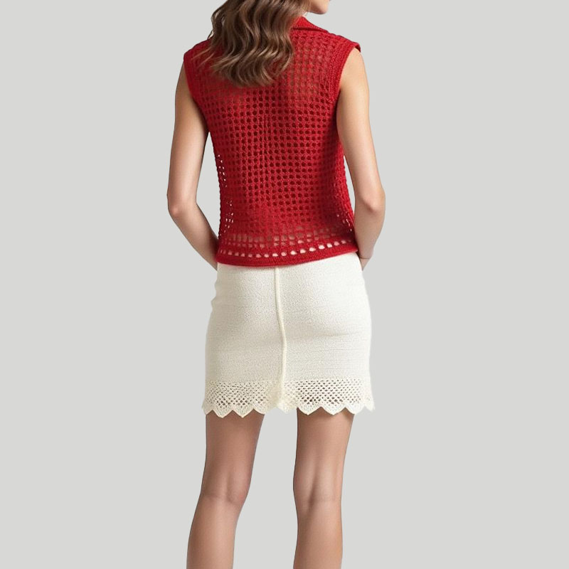This women’s knitted short-sleeved top is the perfect combination of fashion and practicality with its exquisite design and comfortable material.