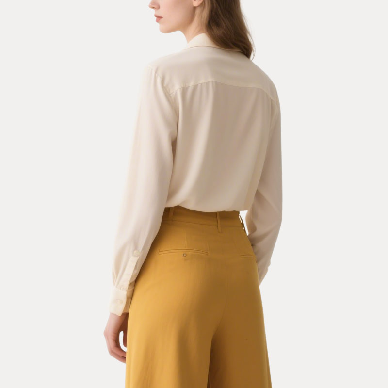 Classic Button – Down Silhouette: Features a crisp collar and a tailored fit that flatters various body shapes. The timeless design ensures it never goes out of style, making it a reliable wardrobe staple.