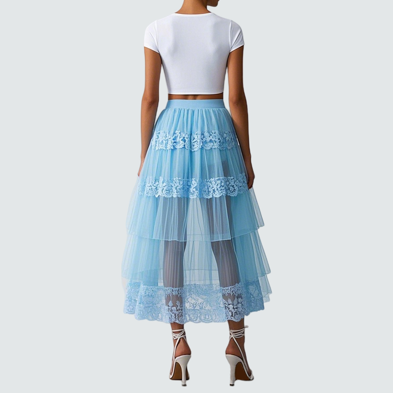 Layered design, long, A-line cute princess party skirt.