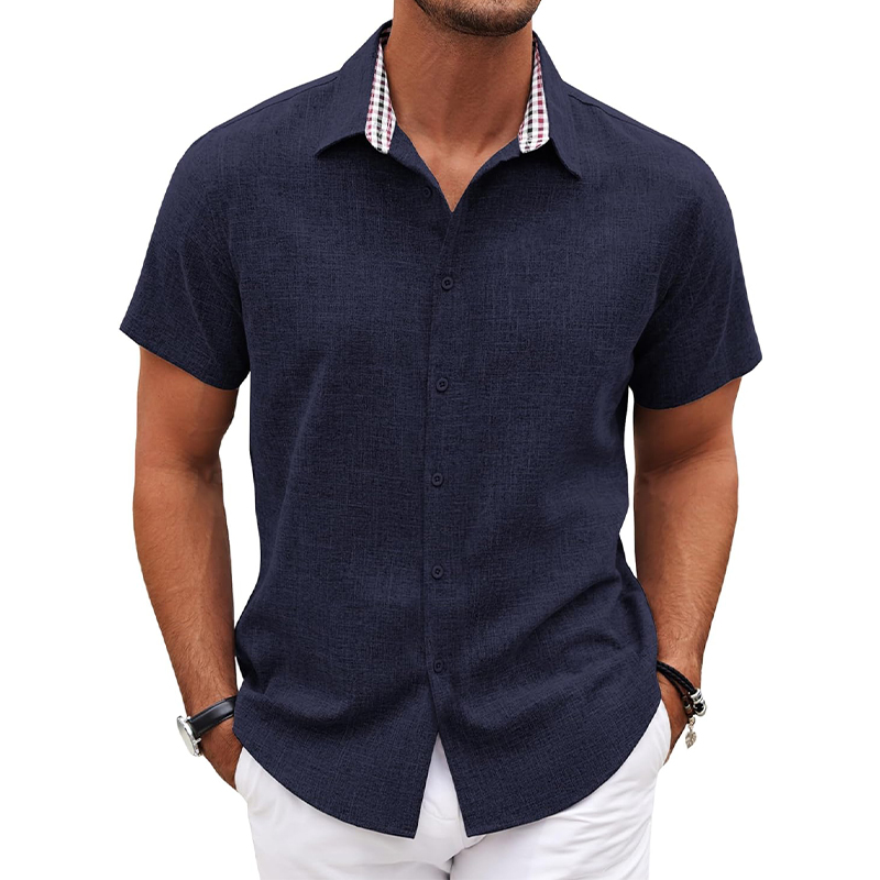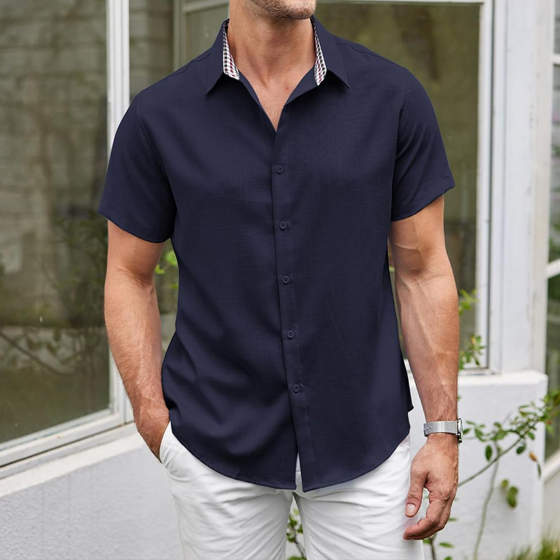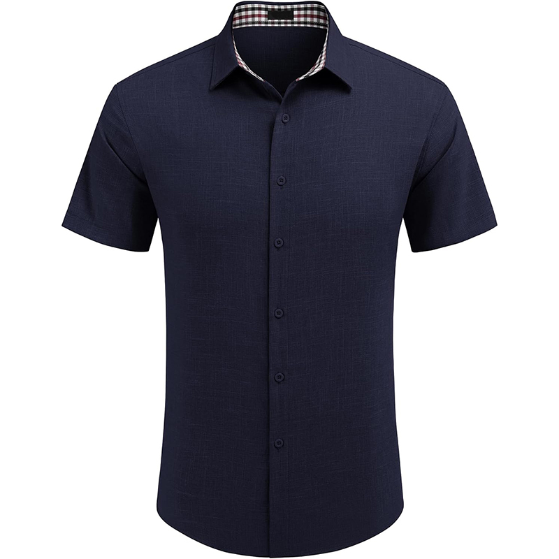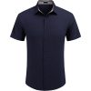 - 【Fashion Design】Men’s button-down stretch shirt, short sleeve, button closure, hidden button placket, plaid lapel formal shirt. The classic fit and textured look make this shirt casual and sophisticated, you can wear this shirt on any occasion.