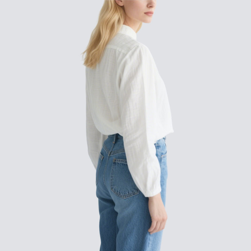 Classic Button – Down Silhouette: Features a crisp collar and a tailored fit that flatters various body shapes. The timeless design ensures it never goes out of style, making it a reliable wardrobe staple.
