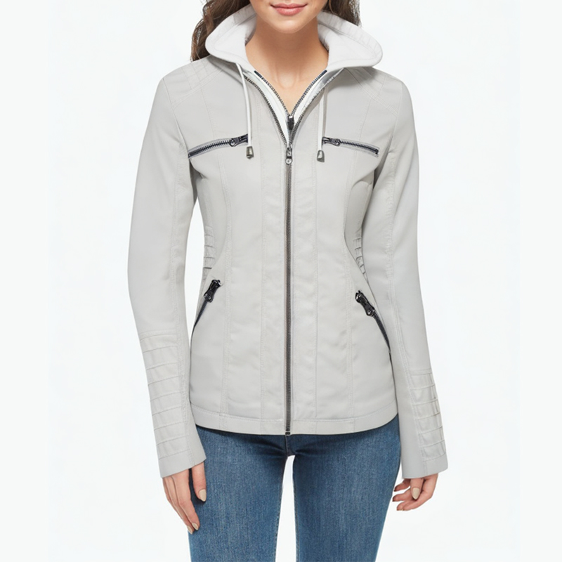 Fashion Autumn Winter Coat Hooded Women Leather Jackets