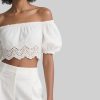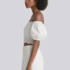 Elevate your summer wardrobe with this lightweight, breezy off-shoulder blouse crafted for effortless elegance. Featuring a soft cotton-blend fabric with a slight stretch for all-day comfort, the cropped design showcases a sophisticated lace waistband that adds subtle texture and femininity. The voluminous balloon sleeves and relaxed fit create a flattering silhouette, perfect for casual outings or chic daytime events.