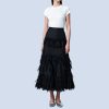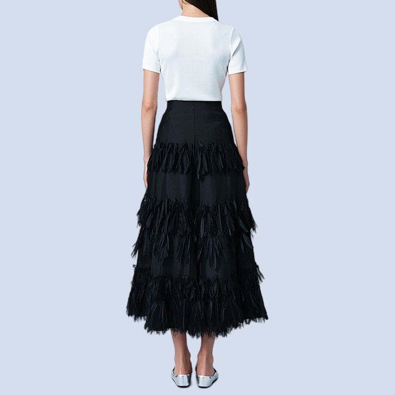 This black midi skirt features tiered fringes and a high – waisted cut for a flattering, feminine look. Its bold color offers timeless sophistication.