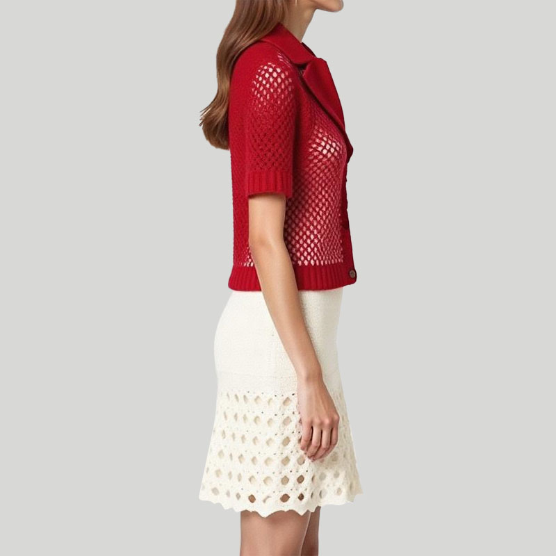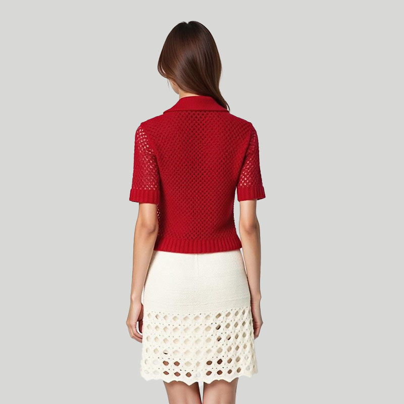 This women’s knitted short-sleeved top is the perfect combination of fashion and practicality with its exquisite design and comfortable material.