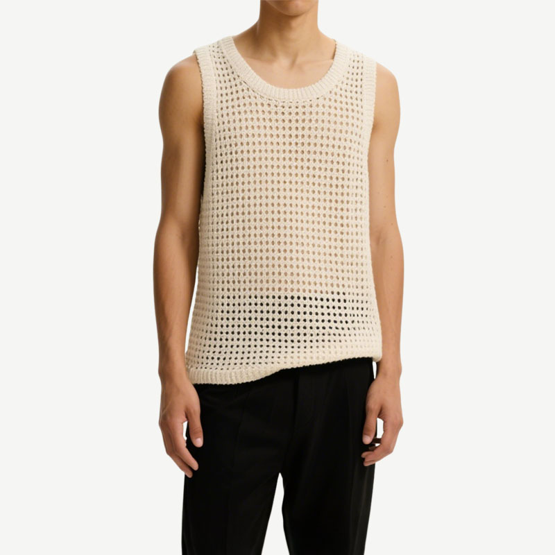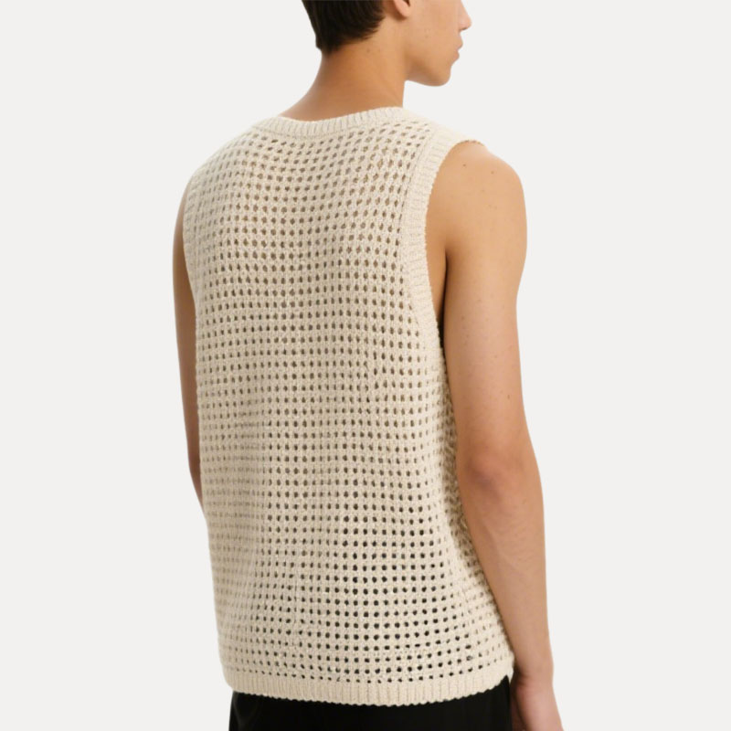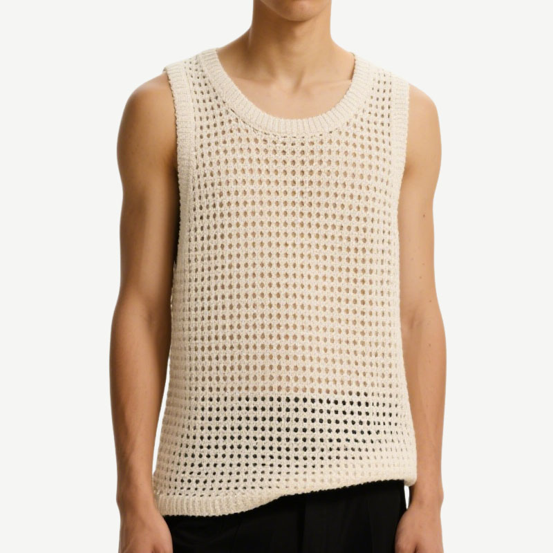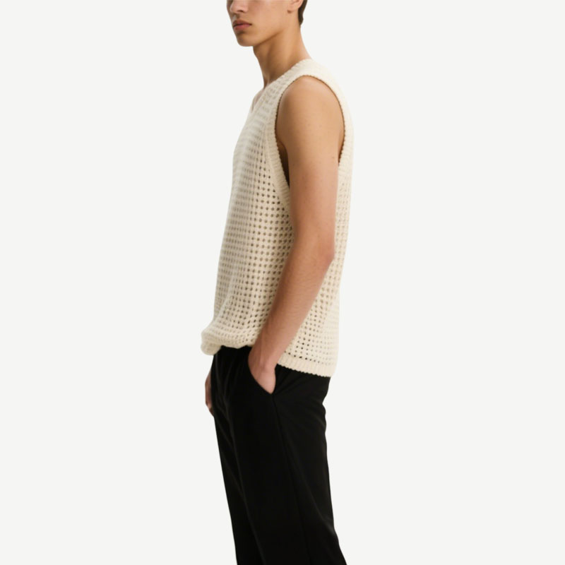 Fashionable Hollow Woven Off-White Sleeveless Men’s Knitted Vest