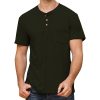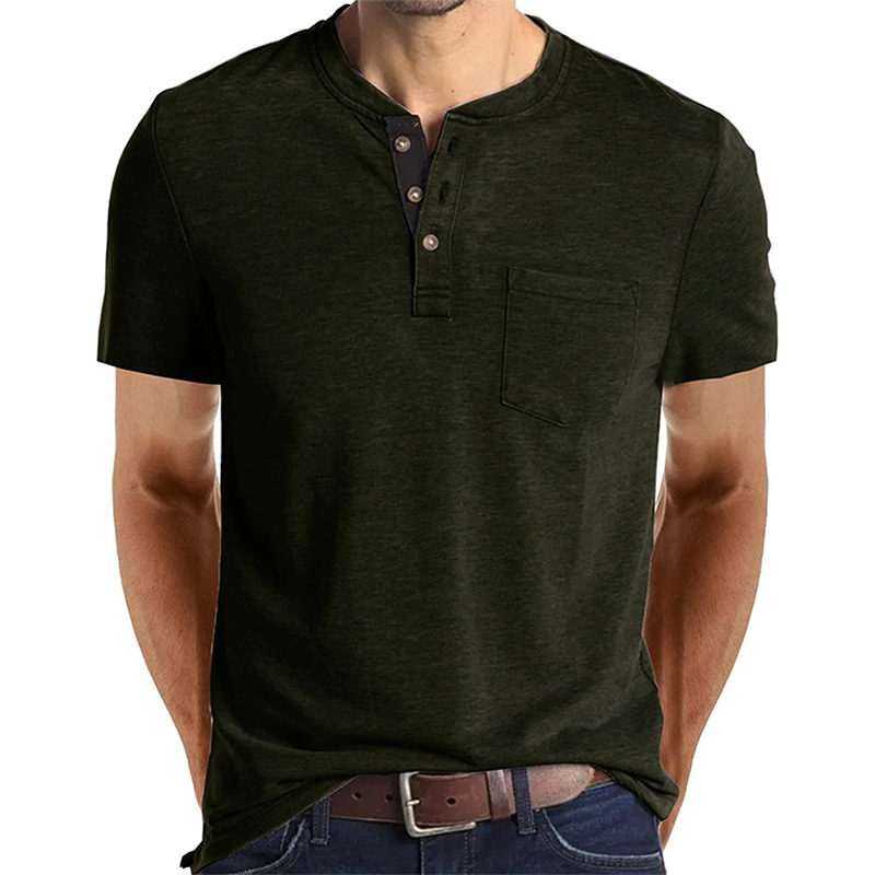 Adopting classic round neck, short sleeves, solid color design, 3 button closure design, and a front pocket on the chest, it creates a casual daily look.