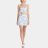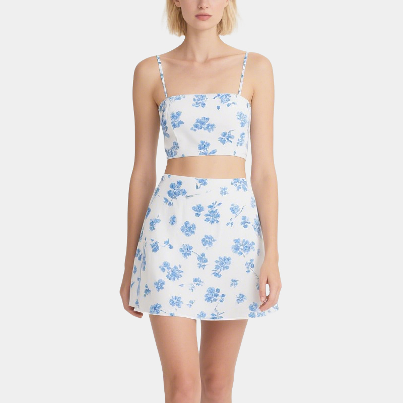 Fresh Blue and White Flower Suspenders High Waist a Letter Skirt Set