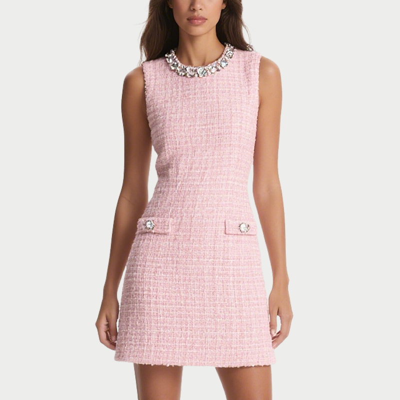 Gorgeous and Elegant Tweed Dress with Diamond Collar