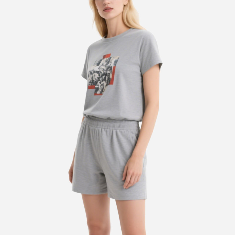 Grey Graphic Tee & Shorts Set Women’s Summer Casual Athletic Set