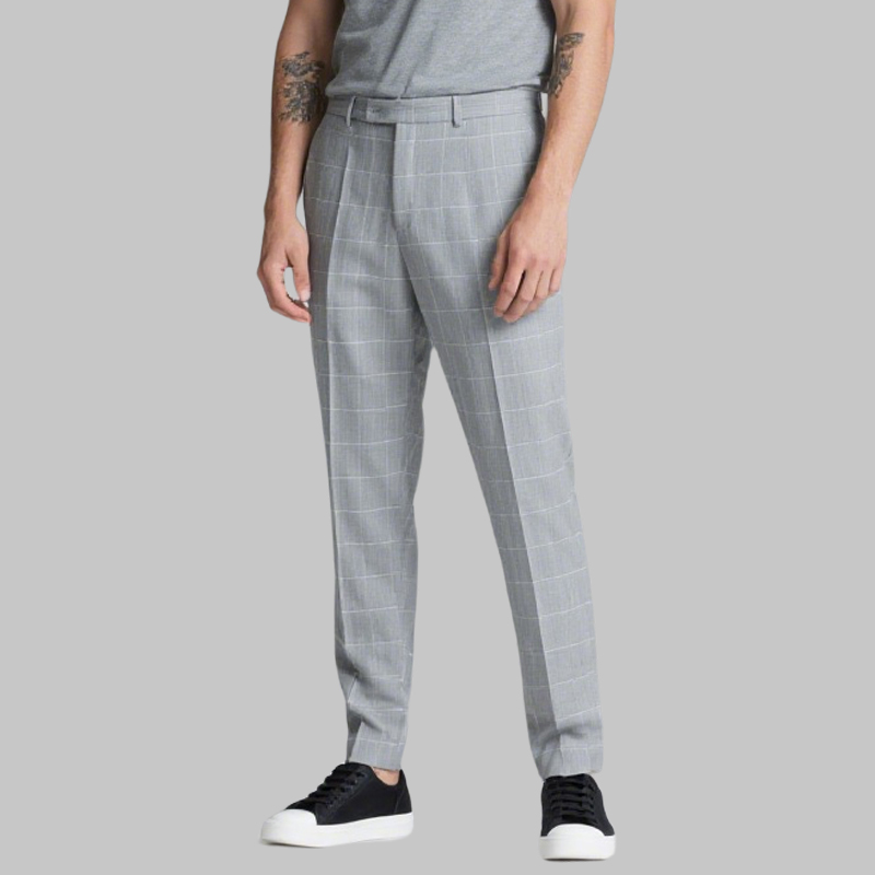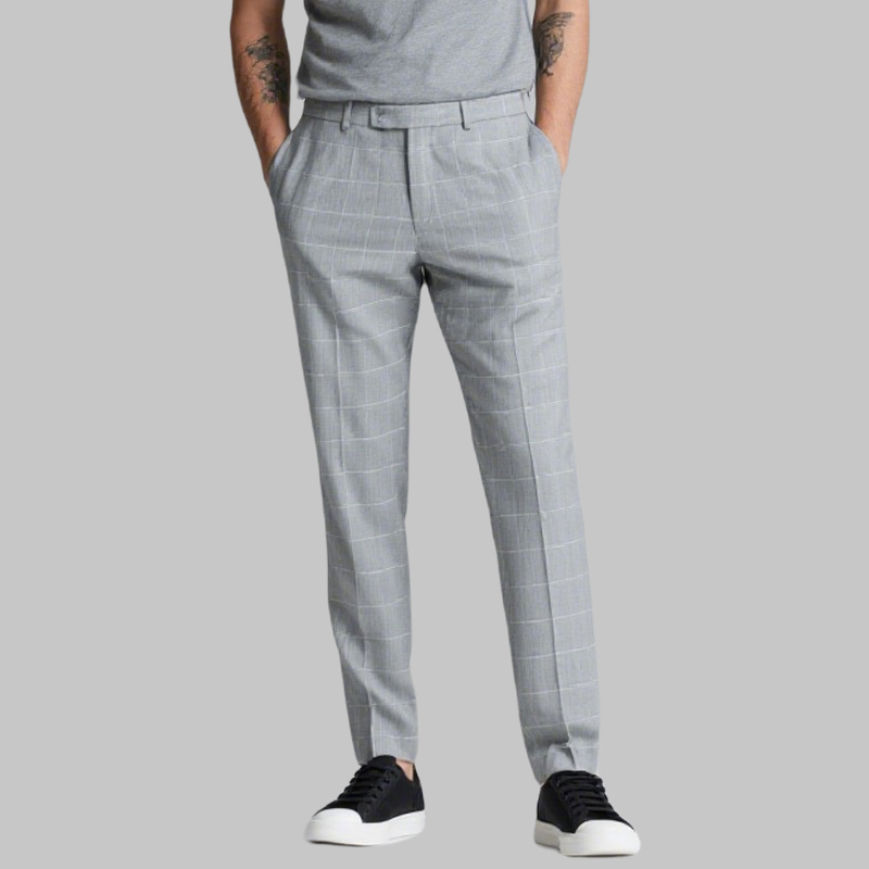 Grey Grid Patterned Men’s Dress Pants Casual Formal Trousers