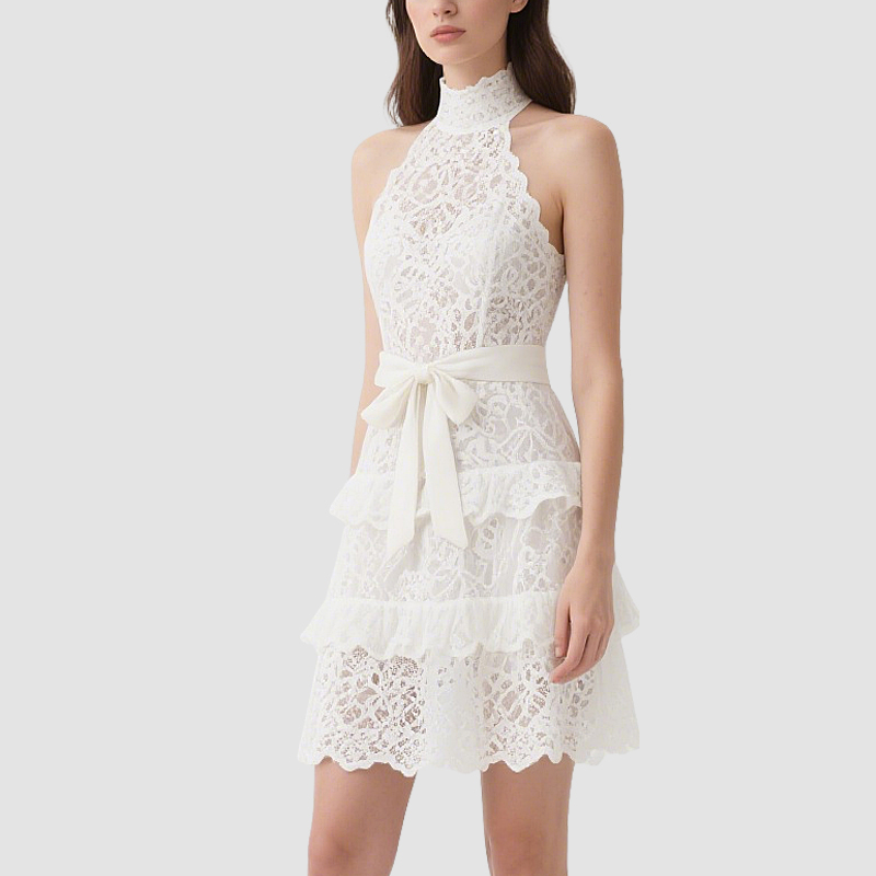 Halter Neckline: High – neck halter design shows off the shoulders and back, with a lace – detailed, elegant look.