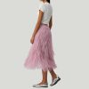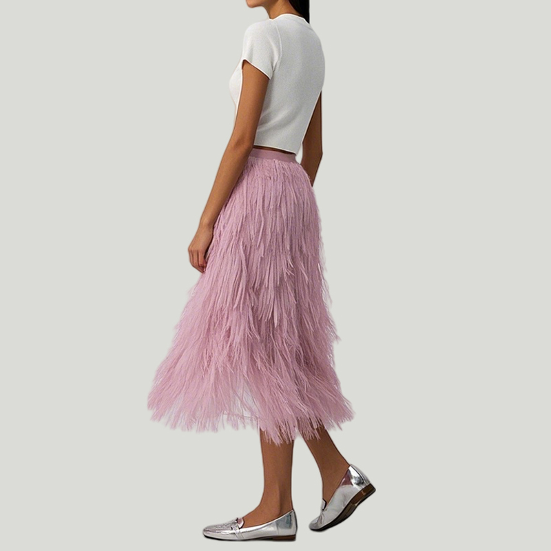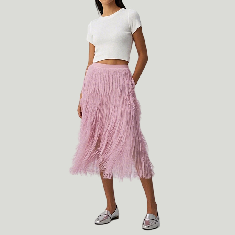 This midi skirt features a trendy pink fringe design. The flowing fringes add movement, and the high – waisted style flatters the figure.