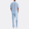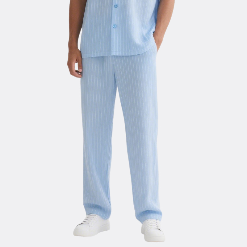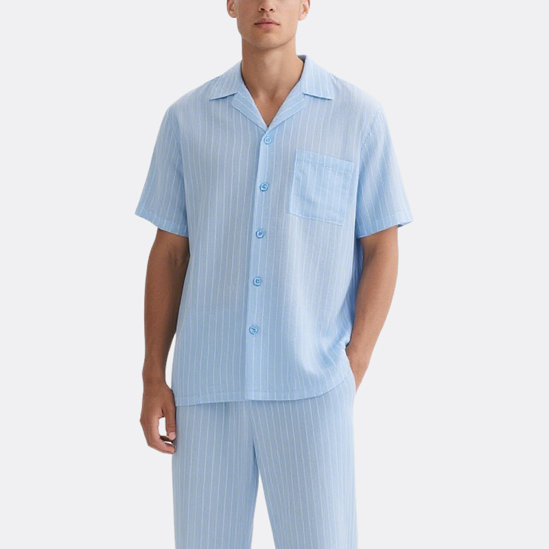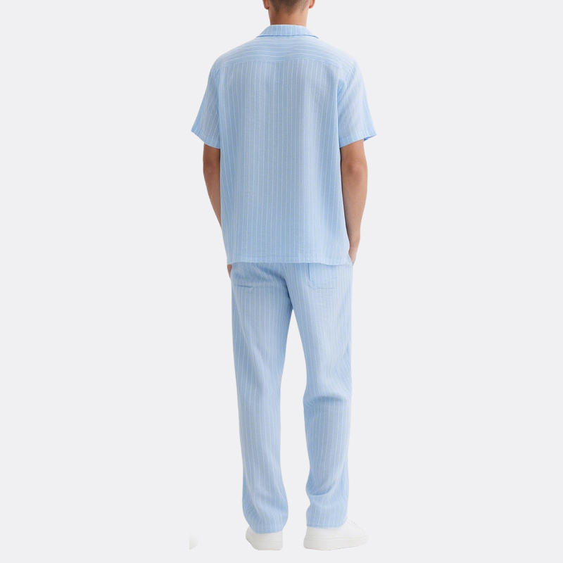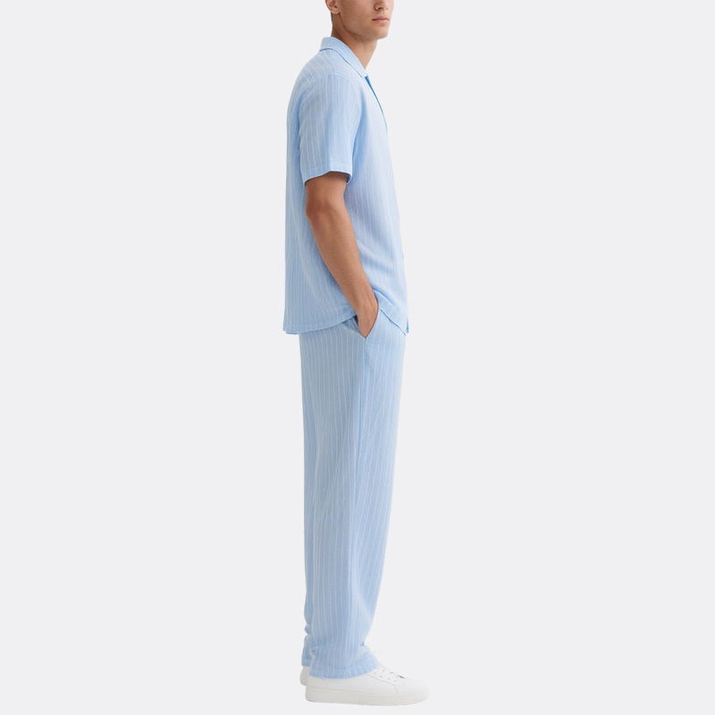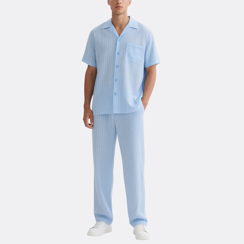 Light Blue Striped Men’s Summer Two Piece Set Short Sleeve Shirt & Pant