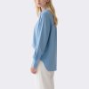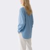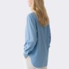 Light Blue Women’s Button Down Shirt Oversized Plain Casual Top