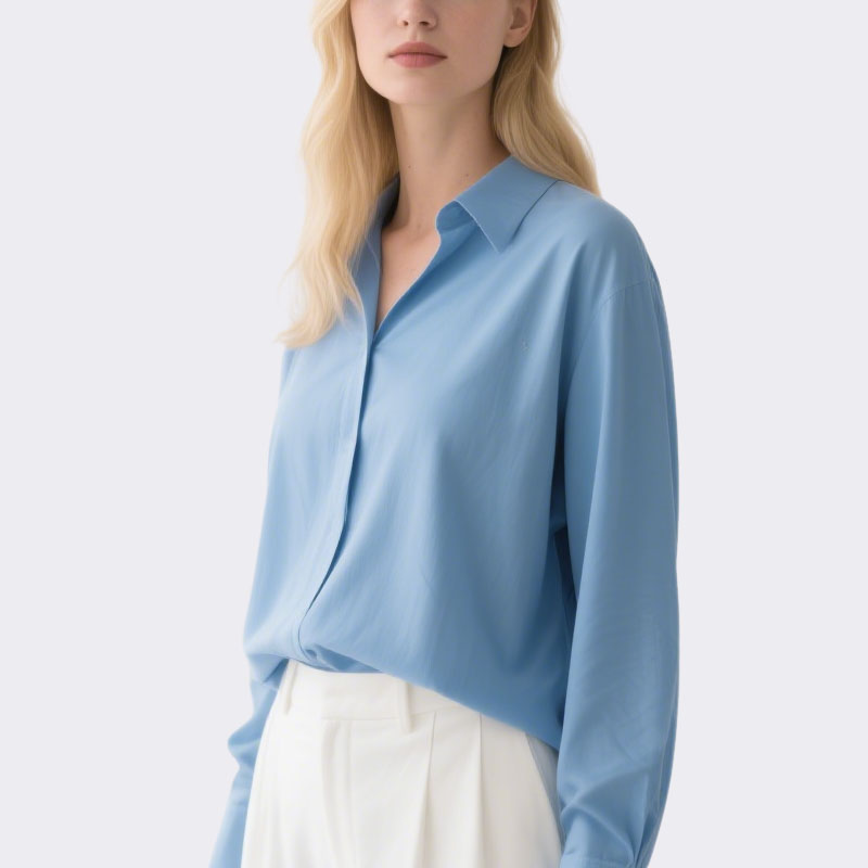 Classic Button – Down Silhouette: Features a crisp collar and a tailored fit that flatters various body shapes. The timeless design ensures it never goes out of style, making it a reliable wardrobe staple.