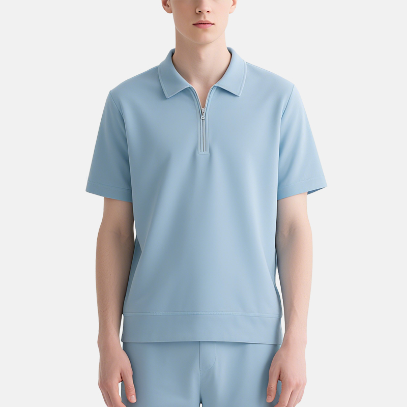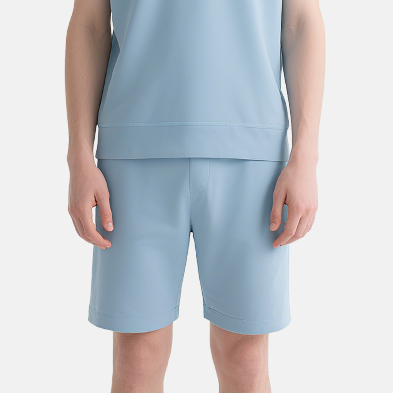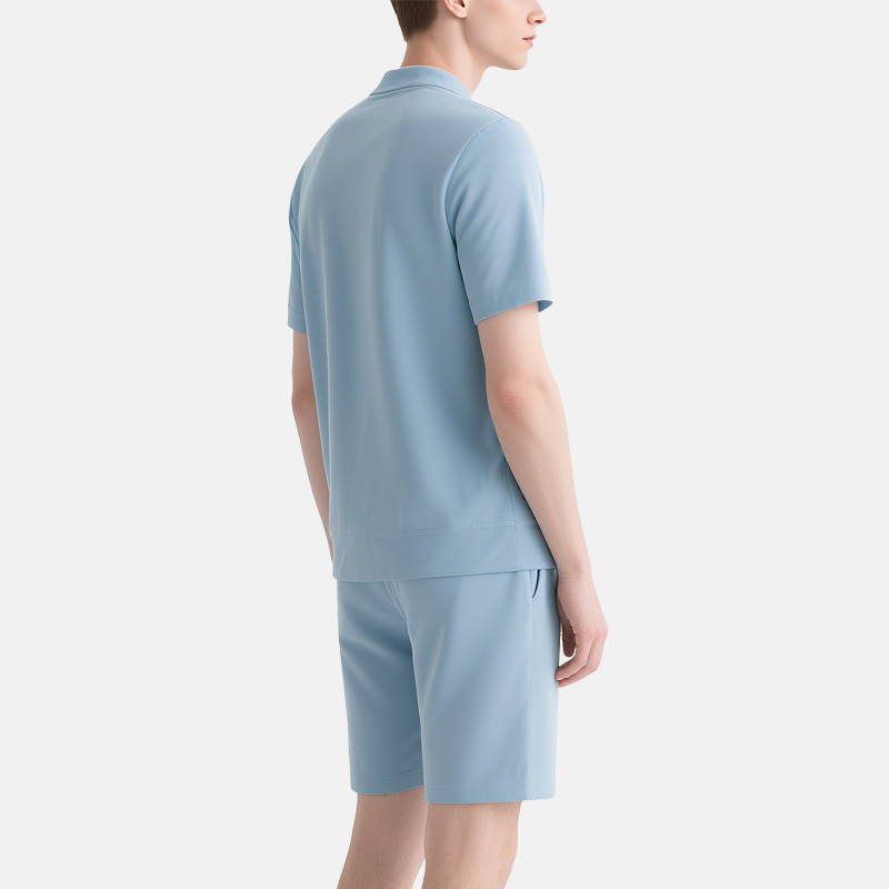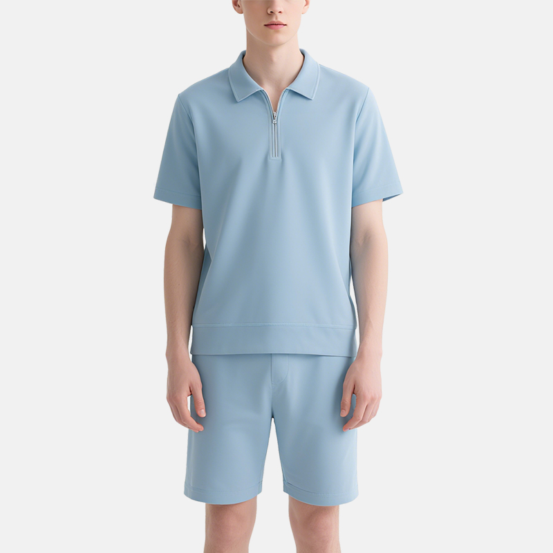 Light Blue Zip – Polo Shorts Set – Men’s Summer Smart Casual Wear