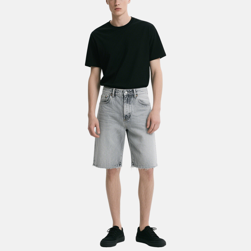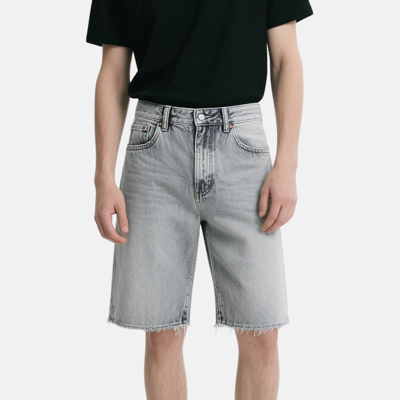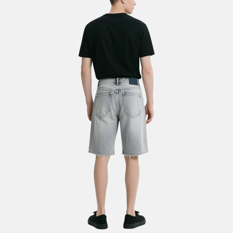Light Grey Raw Edge Trendy Men’s Denim Shorts