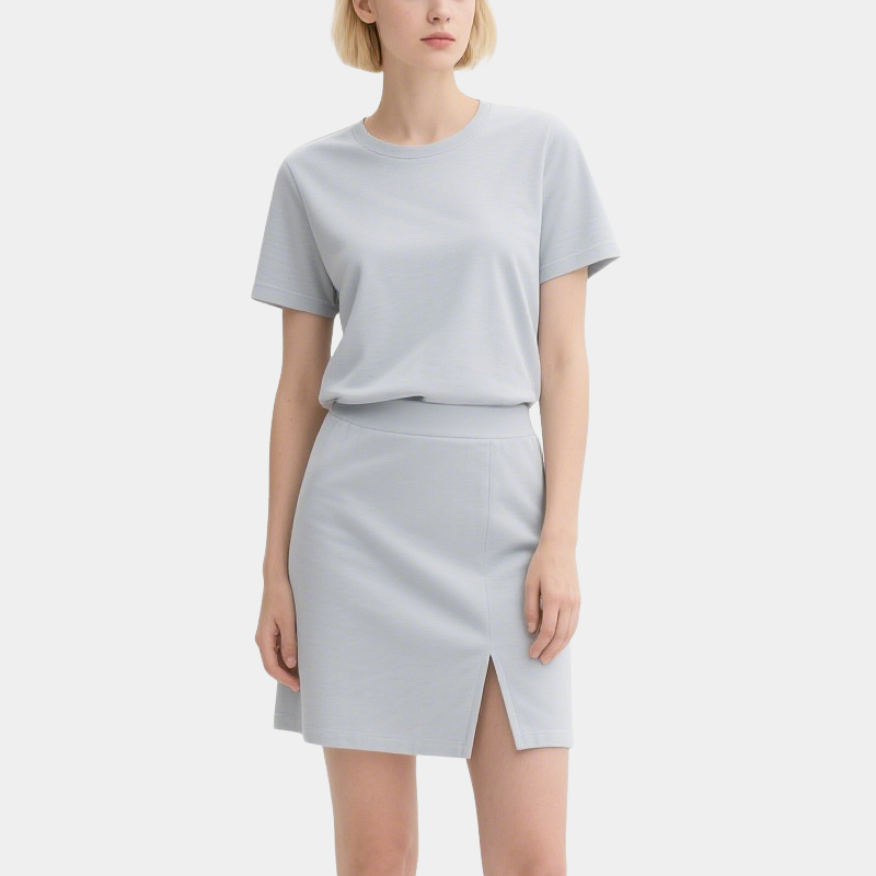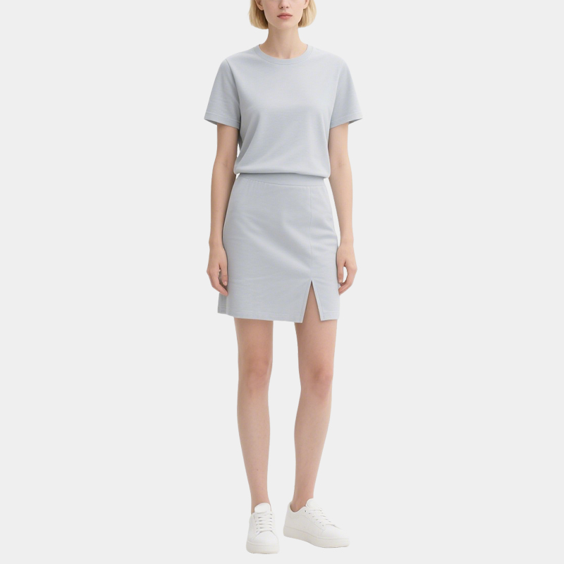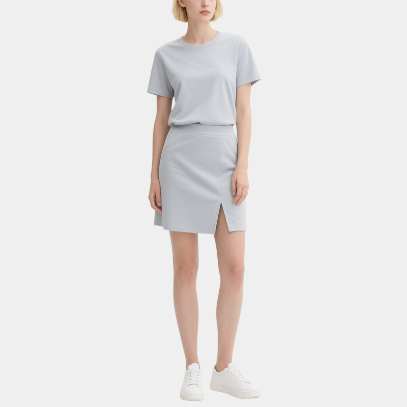 Light Grey Short Sleeve T-Shirt Slit Skirt Set