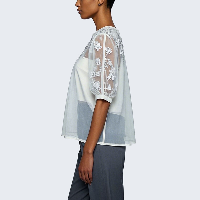 Cute tops for women in spring and summer, floral embroidery, elegant going out tops.