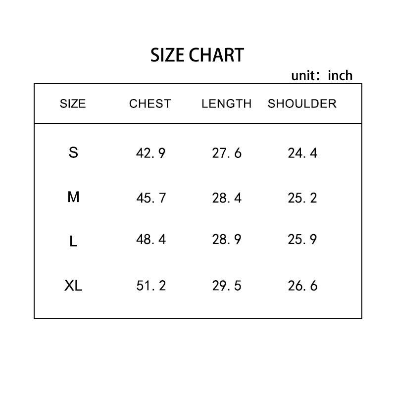 A variety of sizes are available, and the right size can ensure that the clothes are comfortable to wear, will not restrict the body or affect activities, and enhance the comfort and self-confidence of the wearer.