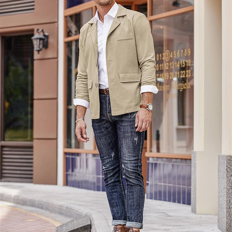 ? Matching skills: Linen suit jackets are best paired with jeans or chinos, with a simple formal shirt or T-shirt inside, giving a relaxed and fashionable feeling, and can also be paired with suit pants.