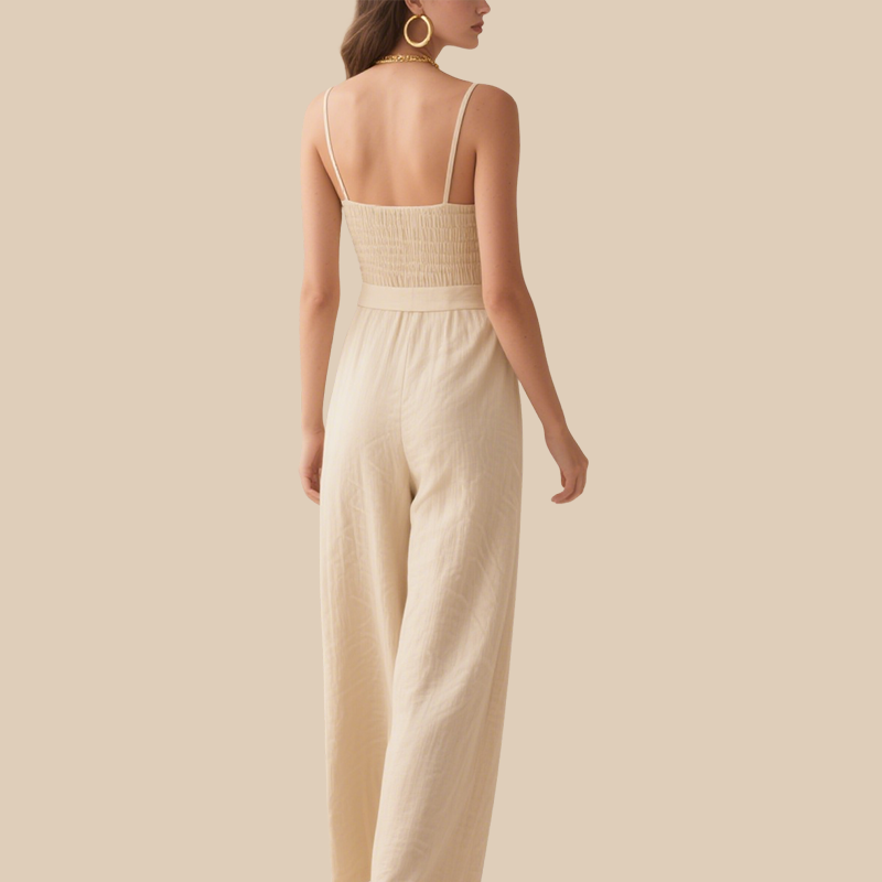 Summer jumpsuit provides a flattering fit and a fashionable silhouette. The elastic high waist design and wide leg silhouette create an elongated look.