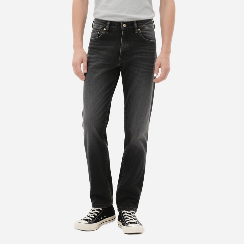 – Crafted with elastane-infused denim, these straight-leg jeans offer unrestricted movement—no stiffness or tightness.