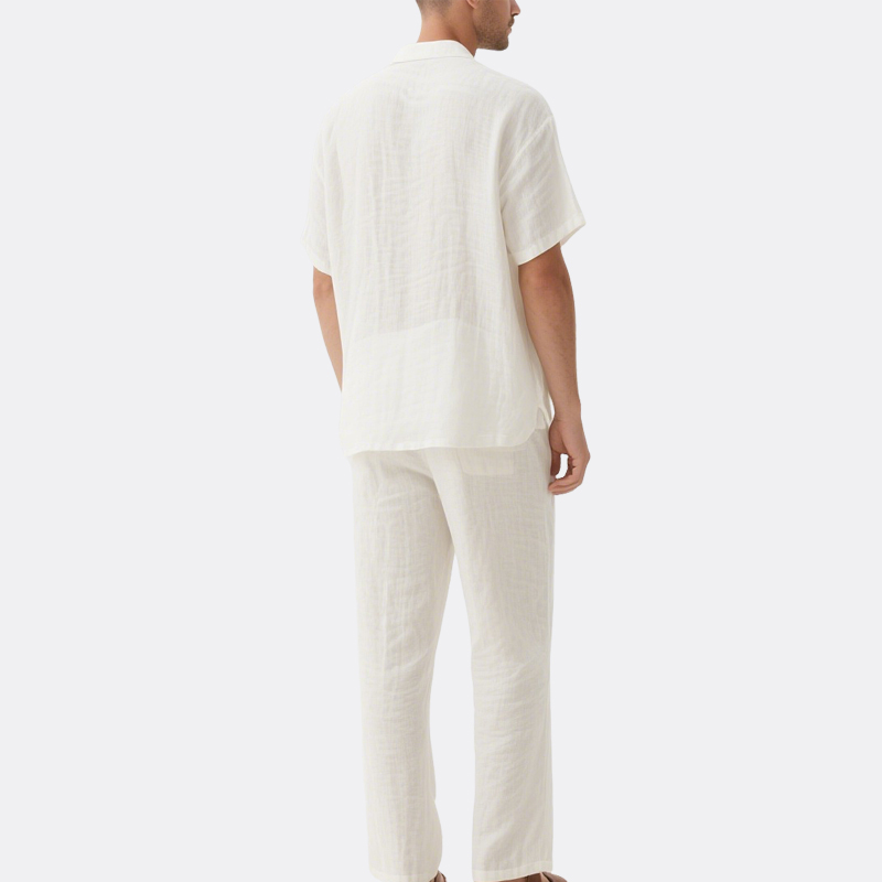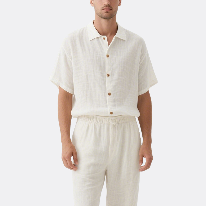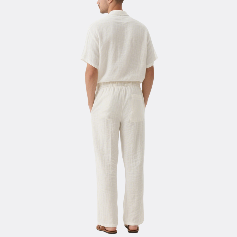 ​​Breathable Fabric​​: Crafted from a soft linen-cotton blend, this set wicks moisture and allows airflow for all-day comfort in hot weather.